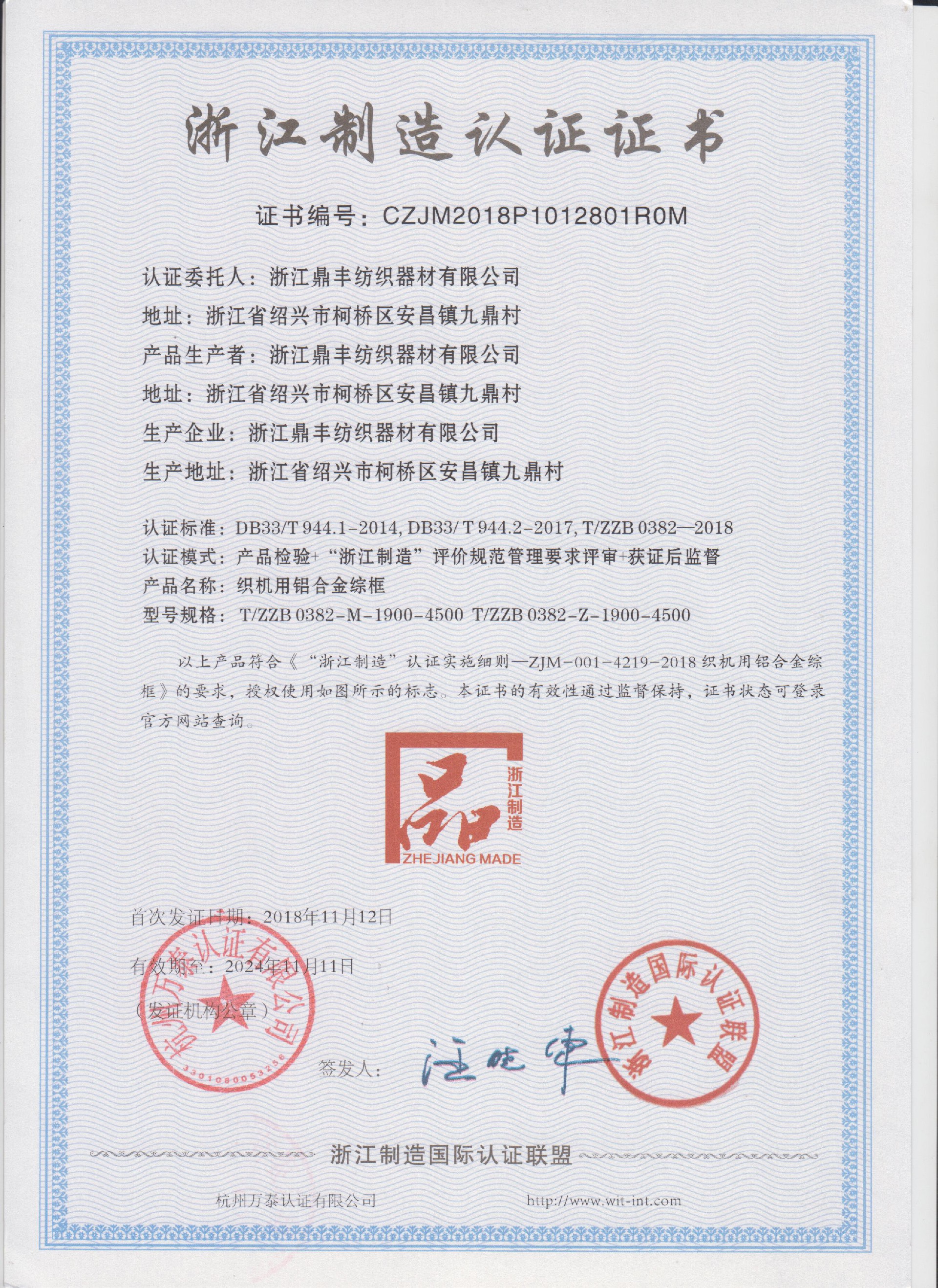 1、贵公司是一家专业生产各类无梭织机铝合金钢筘、综框、钢片综、停经片、经轴、织轴和卷布辊等产品及配件的民营企业。公司成立30多年迅速发展、占领市场的秘决是什么?余定雅:是高品质的产品,完善的售后服务和大规模的生产能力保证了浙江鼎丰纺织器材有限公司的产品销售量在国内独占鳌头。为了与全球市场经济接轨,鼎丰纺